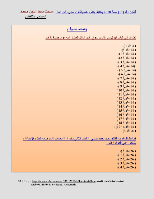 قانون رقم (17) لسنة 2018 بتعديل بعض أحكام قانون سوق رأس المال الصادر بالقانون رقم 95 لسنة 1992