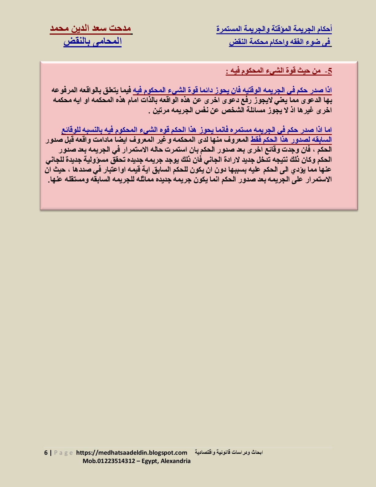 المختصر فى أحكام الجريمة المؤقتة والجريمة المستمرة فى ضوء الفقه واحكام محكمة النقض